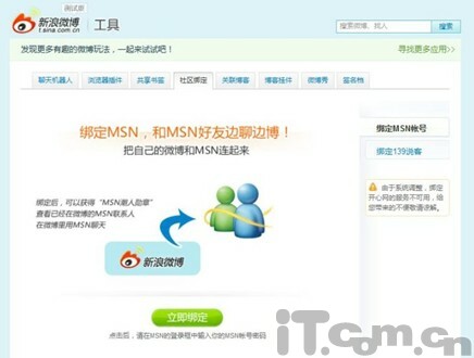 MSN連接平臺實現綁定新浪微博