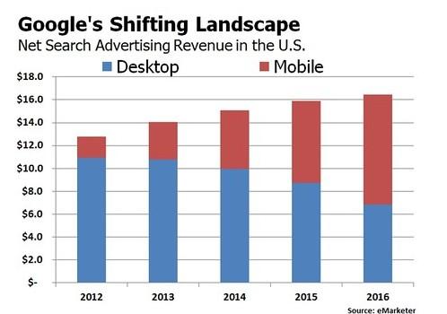 eMarketer預(yù)計,今年美國市場臺式電腦搜索營收會加速下滑,將從去年的108億美元,降至今年的100億美元;但是,今年的美國市場移動搜索營收,將從2013年的33億美元,增至51億美元。