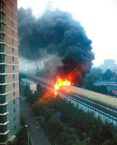 北京地鐵13號線聲屏障騰起數米大火 無人員傷亡(圖)