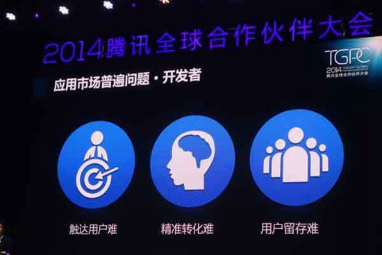 其一、騰訊社交網絡事業群副總裁林松濤表示,移動互聯網上如何分發用戶,目前還是一個現實瓶頸。應用推廣成本越來越高,用戶觸達越來越難,留存越來越低,開發者在這個市場上同樣面臨越來越大的困擾,60%分發量集中在頭部應用;