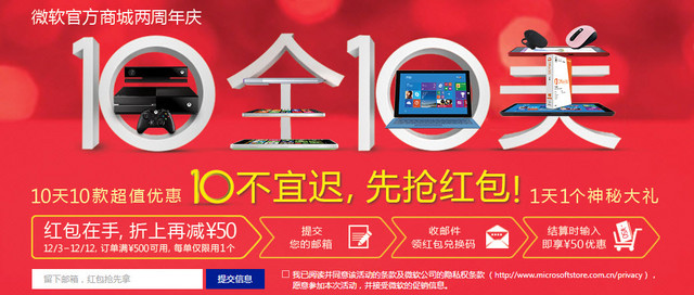 微軟中國(guó)官方商城迎來(lái)兩周年慶,從12月3日至12日,微軟中國(guó)官方商城將攜手天貓微軟中國(guó)官方旗艦店共同為用戶傾情奉上一場(chǎng)持續(xù)十天的感恩大狂歡,年度勁爆超值豪禮,不容錯(cuò)過(guò)。