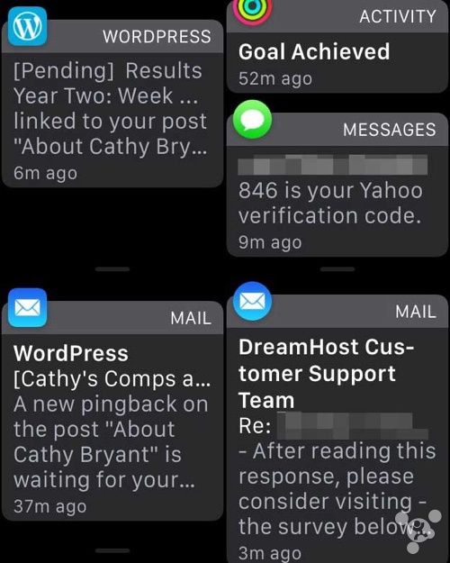 watchOS 會智能區分這兩種通知,據 Mac Kung Fu 博客表示,能夠讓用戶在 Apple Watch 上進行操作的通知(例如回復),這些通知的圖標會呈圓形。反之,那些只能閱讀不能進行交互的通知圖標會呈方形,這種情況下你就需要掏出 iPhone 進行回復。