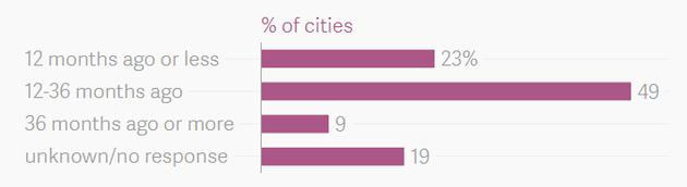 該項目還進行了一項在線調查,其中38個城市作出了回應。四分之一參與調查的城市在去年開始了自己的自動駕駛汽車項目。大多數人預測說,自動駕駛汽車將在現有的公共汽車、鐵軌或其他公共交通工具之外,為人們的家庭提供“最后一英里”交通。許多人還預計自動駕駛汽車將取代出租車和公共交通。