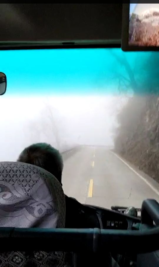 山路又急又陡,早晨的霧氣也還沒散開,大家懷揣著不安又期待的心情看著窗外漸變的景色