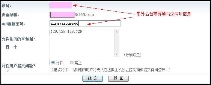 2、點(diǎn)擊左側(cè)的“代理商管理”——“API接口配置”,設(shè)置好您的接口用戶名和密碼,允許訪問(wèn)的IP地址填寫您的星外系統(tǒng)主控服務(wù)器的IP.如圖: