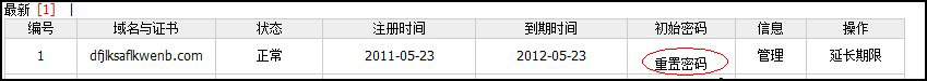 會(huì)返回到域名管理列表后,再點(diǎn)擊“重置密碼”,即可用新的密碼來(lái)登陸管理域名了。如圖: