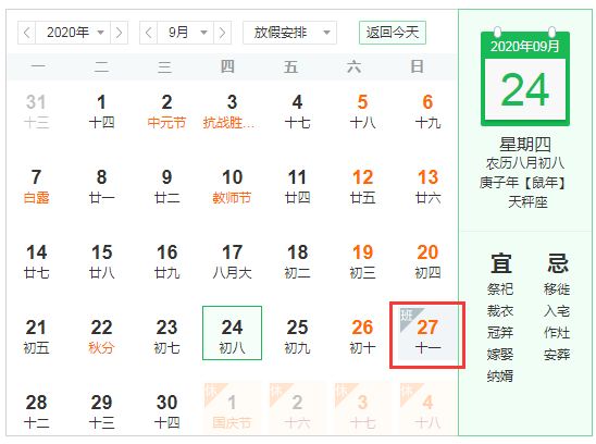 2020年十一國慶中秋節(jié)放假時(shí)間安排